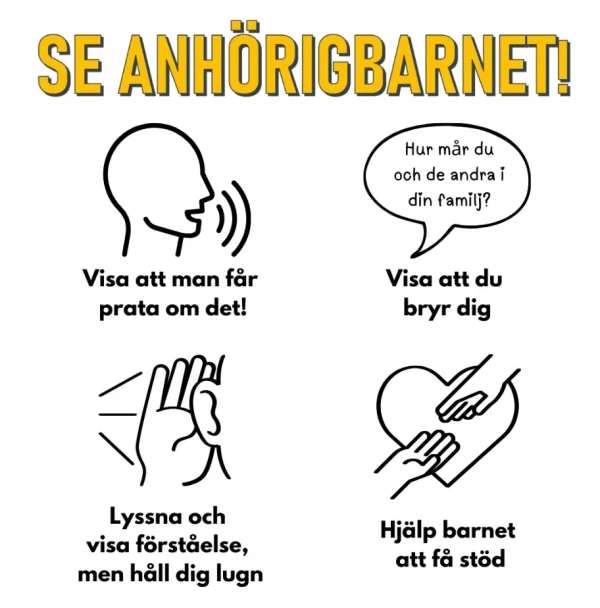 Vart fjärde barn i Finland lever med risk-/missbruk i familjen. Det är viktigt att prata om det och att hjälpa barnen. Syftet med Se anhörigbarnet!-kampanjen är att bryta tystnaden kring detta och att ge stöd till anhörigbarnen.
